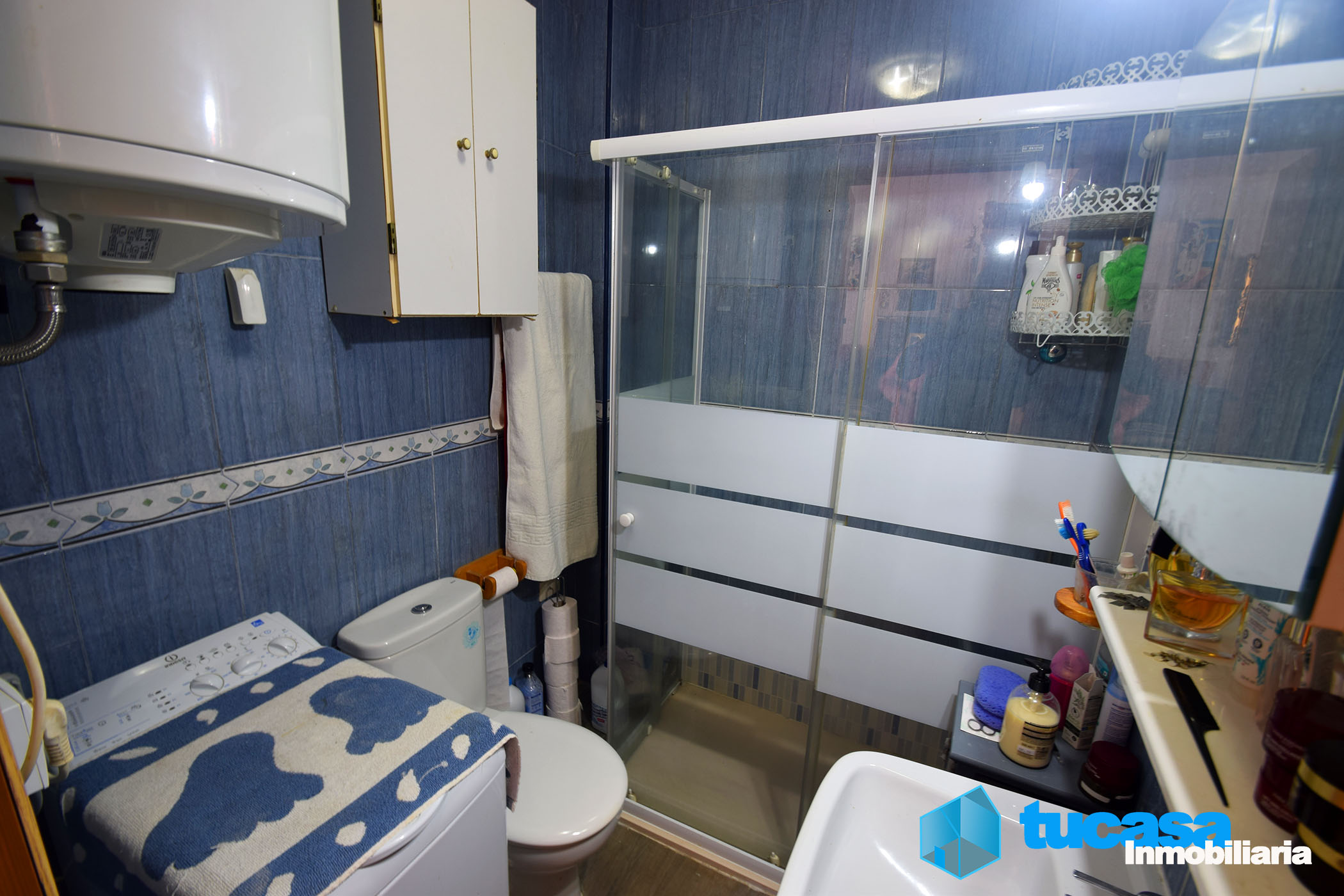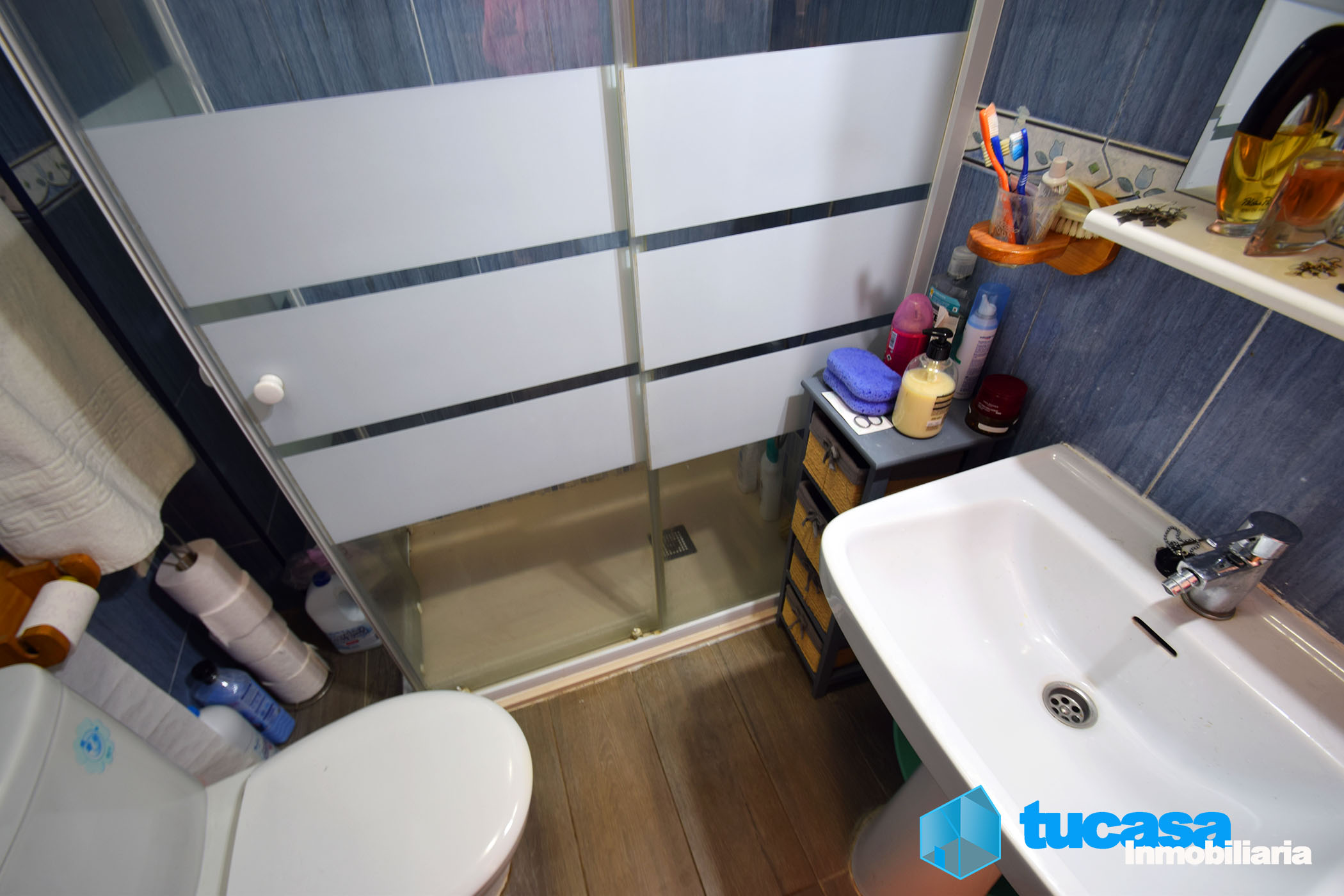 El baño de la vivienda en completo, con plato de ducha y mampara, y se ha renovado recientemente.