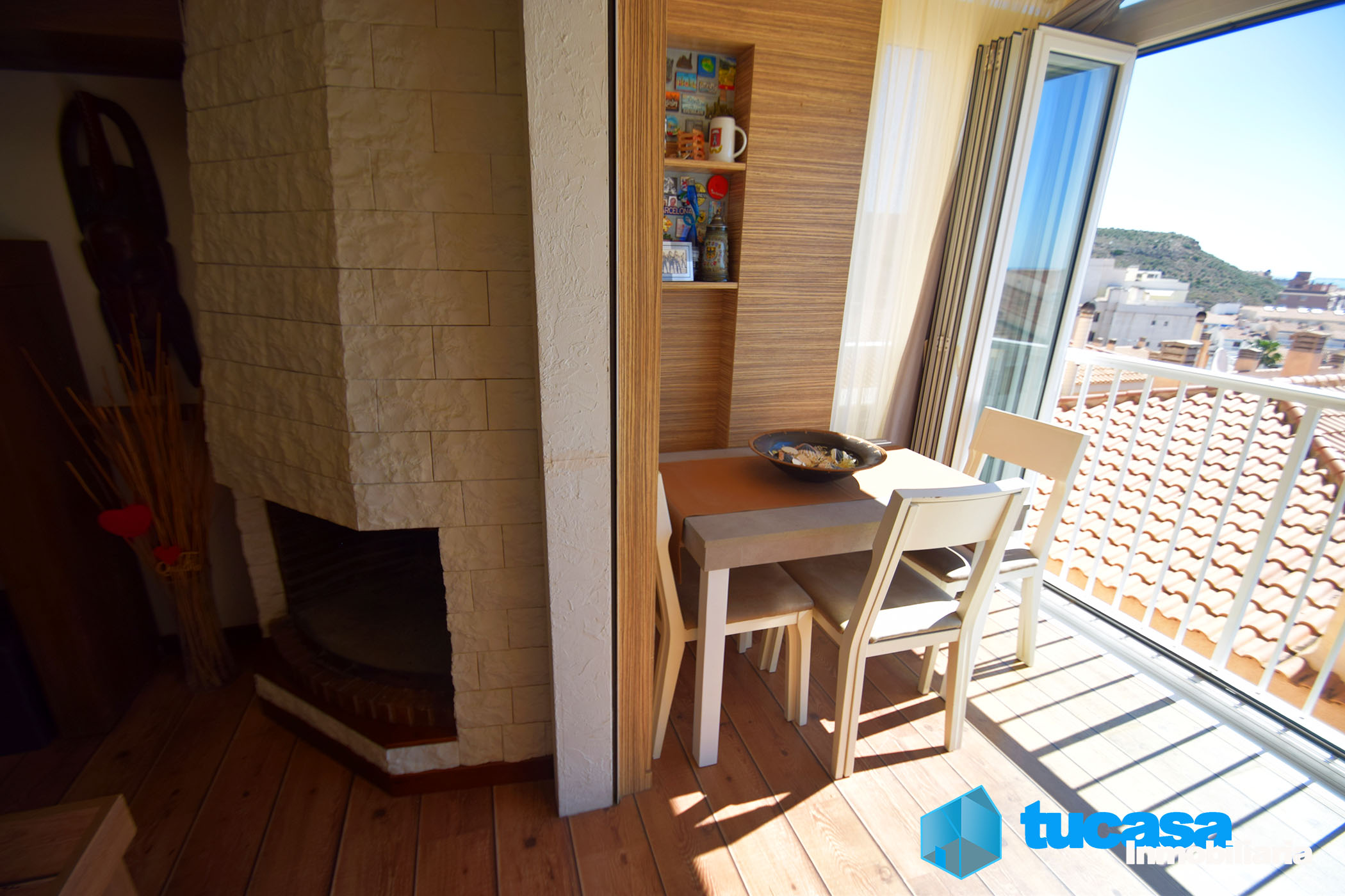 El salón-comedor es uno de sus grandes atractivos: un espacio acogedor con chimenea y unas impresionantes vistas al mar que crean un ambiente único. Desde aquí se accede a una magnífica terraza orientada al mar, perfecta para disfrutar de momentos de relax y de las vistas cada día.